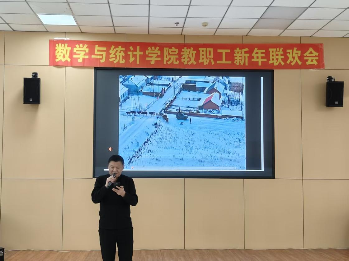联欢会在学院院长王纯杰的致辞中拉开序幕,院长对2025年学院整体工作做出总结,并对数统学院的未来提出了展望,最后向全体教职工致以最真挚的新年祝福!